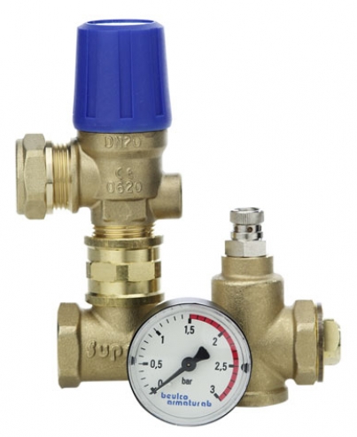 Måste sitta i samband med expansionskärl. detta består av ett samlingsrör med avluftning, manometer, säkerhetsventil och påfyllningsventil.